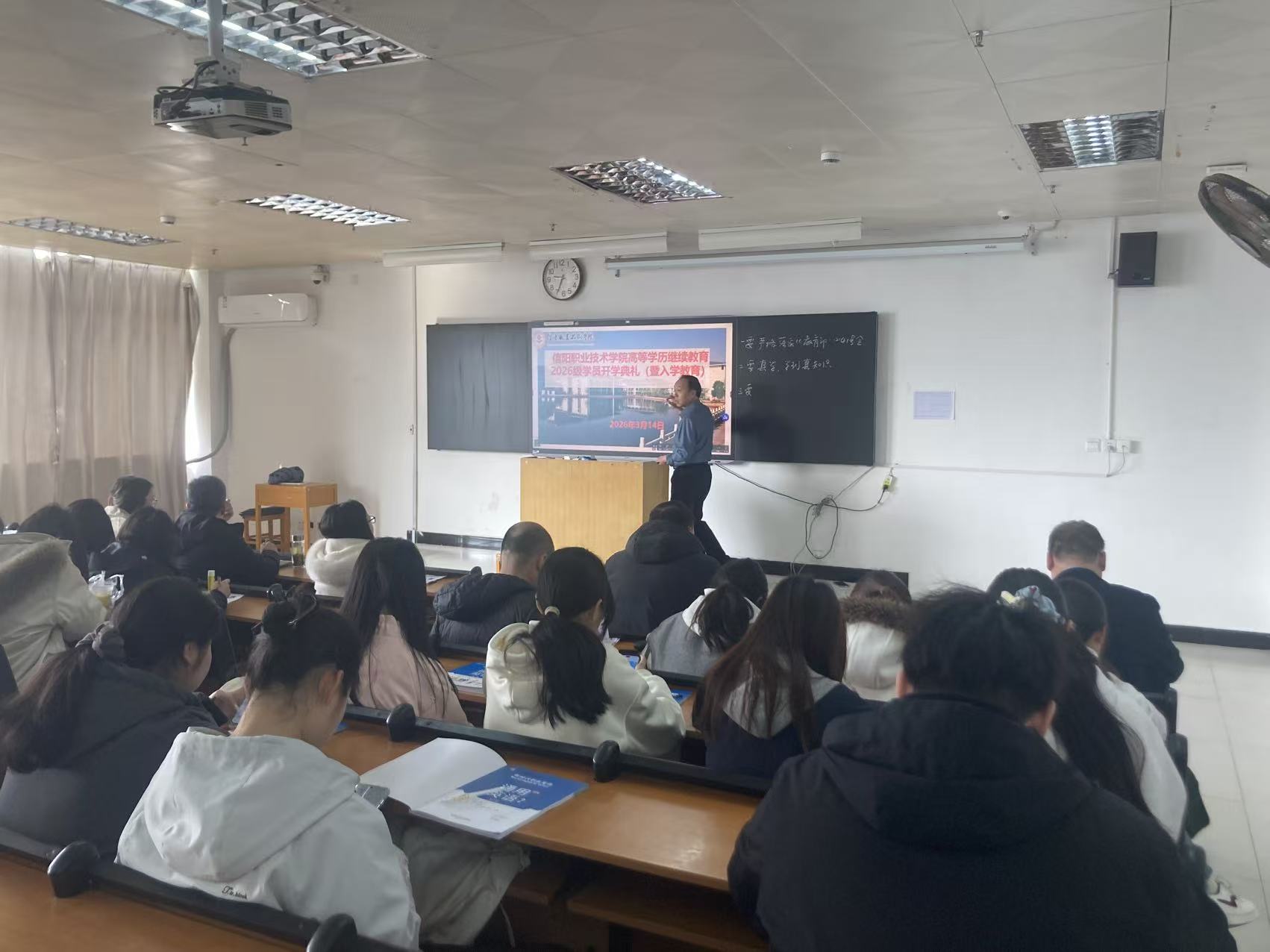 3月14日上午9时,信阳职业技术学院2026级学员开学典礼在护理西302教室举行,来自省内不同地市共计50余名学员参加开学典礼。继续教育学院院长柯楠出席开学典礼并讲话。